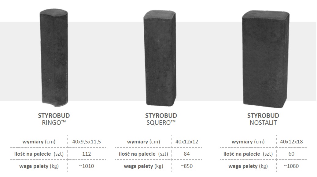 Palisady betonowe Styrobud są estetycznym i stylowym uzupełnieniem naszej oferty obrzeży i krawężników. Charakterystyczny kształt naszych obrzeży to praktyczne, a zarazem piękne aranżacje. Nasze modele – słupek betonowy Squero™ (o kwadratowym profilu), Nostalit (prostokąt) oraz Ringo™ (kształt półksiężyca) mogą być układane w różnych kompozycjach geometrycznych. Nasze palisady barwione są w masie i występują w pięciu kolorach – szary, grafitowy, brązowy, żółty, czerwony.