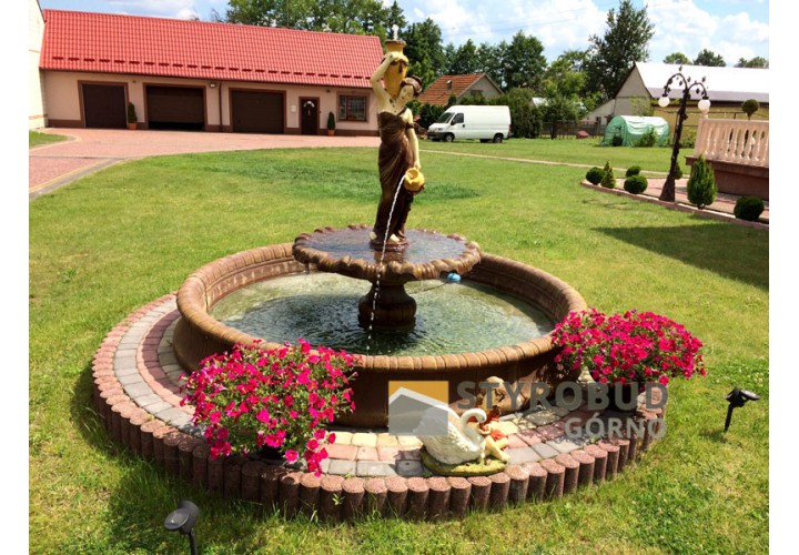 Fontanna wykonana z betonu o wysokiej klasie wytrzymałości C35/45. Mieszanka została stworzona pod kątem spełnienia wszystkich wymagań trwałościowych związanych z późniejszym użytkowaniem takich jak: wytrzymałość, mrozoodporność, nasiąkliwość betonu. Dodatkowo wszystkie elementy betonowe wzmocnione są żebrowaną stalą. Pozytywne wyniki badań stale prowadzonych przez zewnętrzne laboratorium potwierdzają jakość naszych wyrobów.