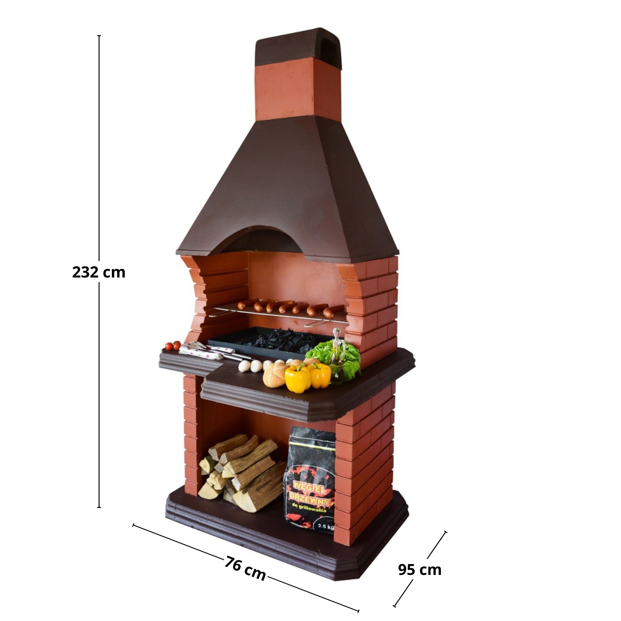 · starannie wykonany grill pomalowany na kolor ceglasty i brązowy