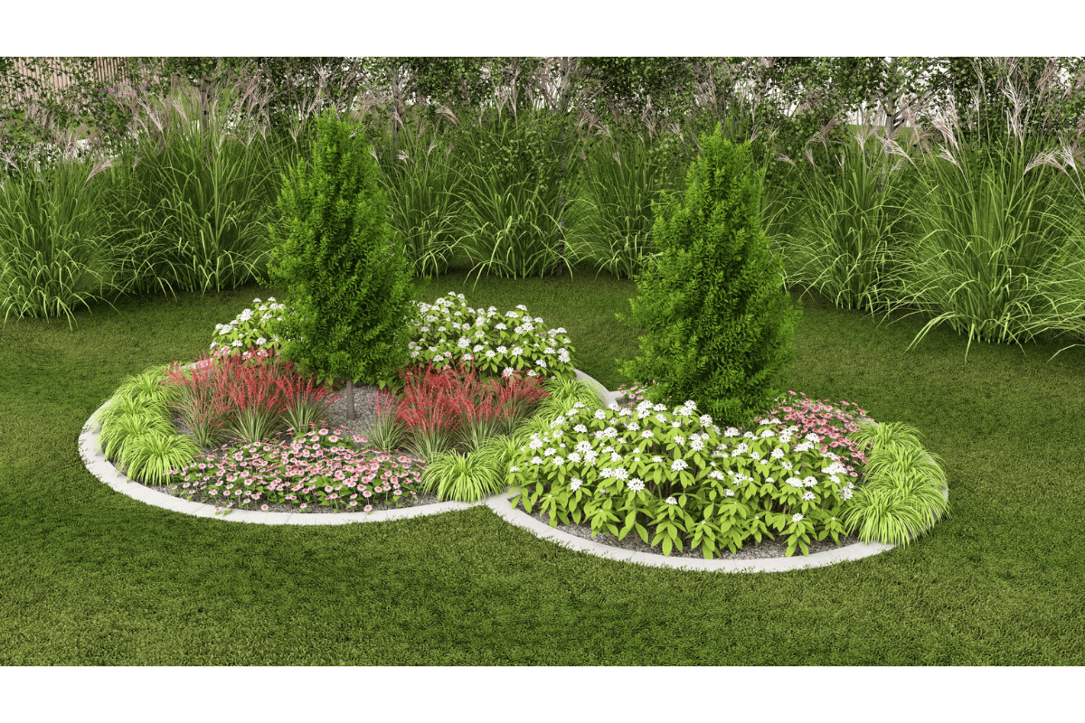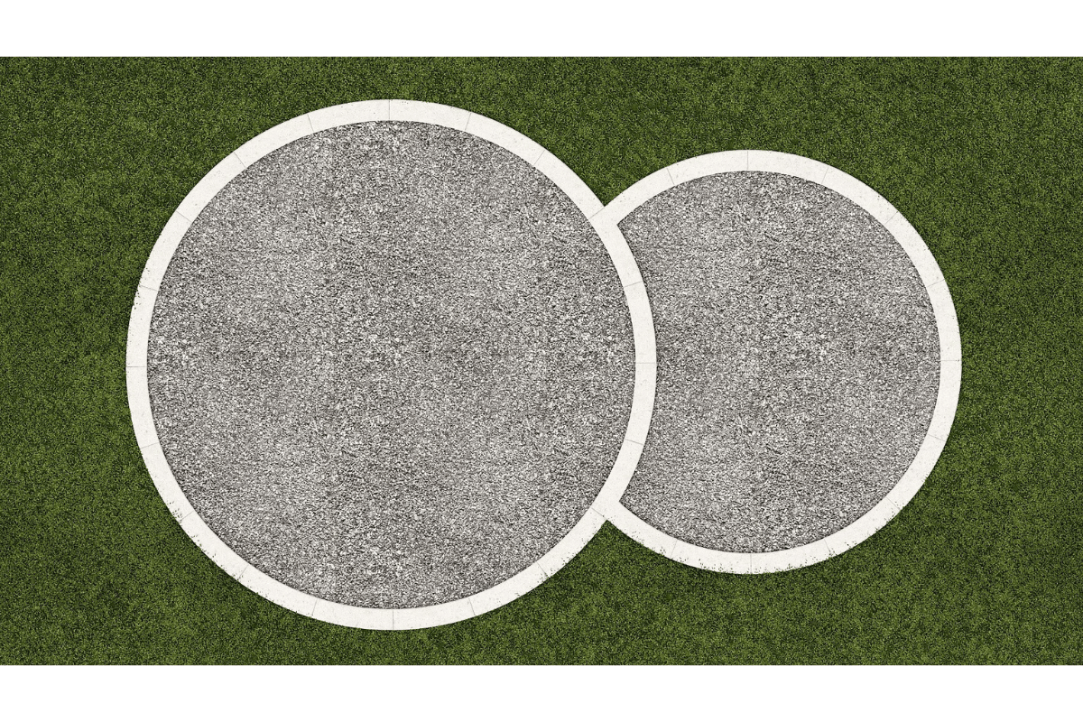 Postaw na efektowne, gotowe rozwiązanie, które pozwala w prosty sposób uporządkować przestrzeń wokół rabat lub drzew. Ta aranżacja wykorzystuje dwa połączone okręgi z betonowych obrzeży o różnych średnicach – tworząc dekoracyjny, a zarazem praktyczny kształt, bez potrzeby docinania czy projektowania na własną rękę.