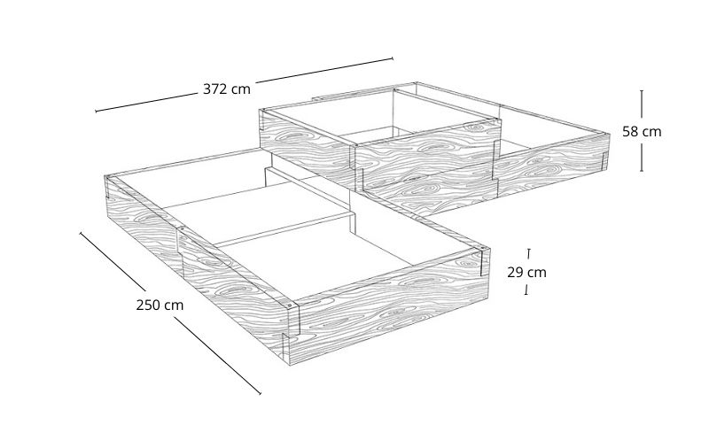 Pamiętaj, że każde połączenie modułów ze względu na ich budowę skraca całkowitą długość skrzyni o 6 cm.