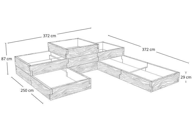 Każdy moduł ma stałą wysokość 29 cm. Układając moduły jeden na drugim, możesz stworzyć stopniowane podwyższone grządki i donice.