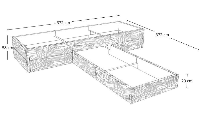 Pamiętaj, że każde połączenie modułów ze względu na ich budowę skraca całkowitą długość skrzyni o 6 cm.