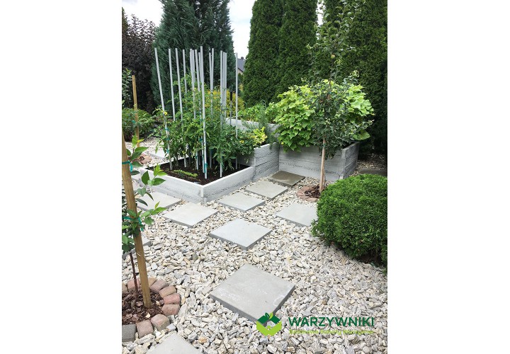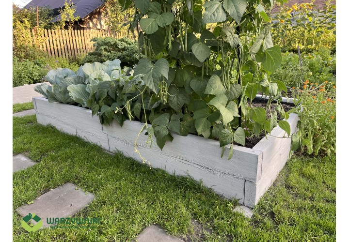 Warzywnik betonowy to podwyższona skrzynia ogrodowa do uprawy warzyw, owoców i ziół, która stanowi trwałą alternatywę dla drewnianych grządek. Składa się z betonowych elementów imitujących deskę, które łączy się ze sobą jak klocki LEGO. Dzięki temu warzywnik ma modułową budowę i pozwala tworzyć różne układy, dopasowane do dostępnej przestrzeni w ogrodzie. W razie potrzeby można go łatwo rozbudować lub zmienić jego układ.