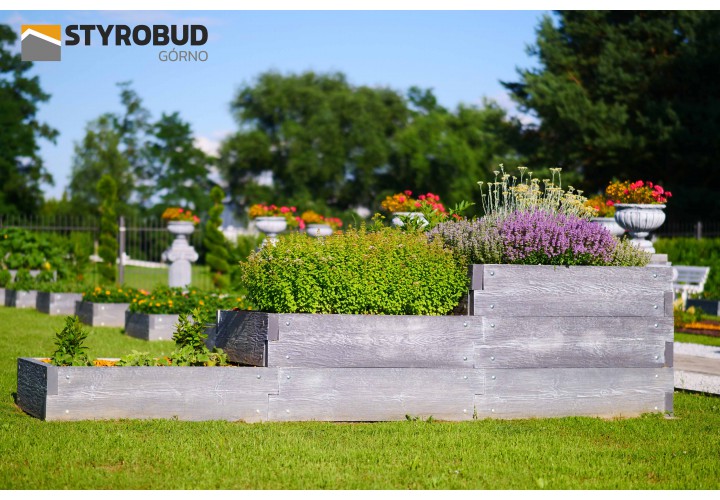 Do wyboru masz moduły o długościach: 50 cm, 90 cm oraz 128 cm, które możesz dowolnie ze sobą łączyć. Dzięki nim możesz tworzyć nie tylko proste grządki, ale również skomplikowane aranżacje, piętrowe rabaty czy kwietniki wokół tarasu.