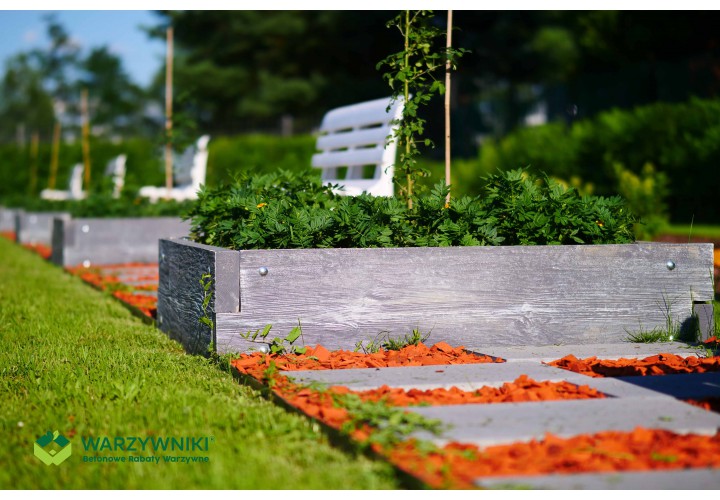 Warzywnik betonowy to podwyższona skrzynia ogrodowa do uprawy warzyw, owoców i ziół, która jest trwałą alternatywą dla drewnianych skrzyń. Składa się z betonowych elementów imitujących deskę, które łączy się ze sobą jak klocki LEGO. Dzięki temu warzywnik ma modułową budowę i można tworzyć z niego różne układy, dopasowane do wielkości ogrodu oraz własnych potrzeb. W każdej chwili można go też rozbudować lub zmienić jego ustawienie.