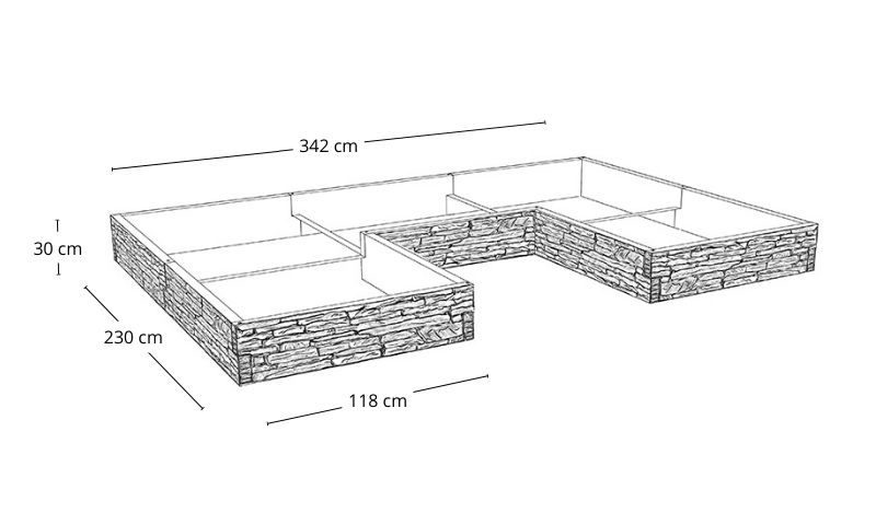 Dzięki modułowej budowie każdy warzywnik możemy w dowolne strony rozbudowywać, tworzyć własne kształty, wysokości oraz stopniowania (piętrowana rabata). Jeden moduł ma wysokość 30cm i dostępny jest w trzech szerokościach 50cm, 90cm i 118cm. Dzięki różnym szerokościom, z elementów można zbudować donice, kwietniki wokół tarasu lub wykorzystać warzywnik jako kompostownik.
