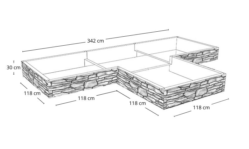 Dzięki modułowej budowie każdy warzywnik możemy w dowolne strony rozbudowywać, tworzyć własne kształty, wysokości oraz stopniowania (piętrowana rabata). Jeden moduł ma wysokość 30 cm i dostępny jest w trzech szerokościach 50cm, 90cm i 118cm. Dzięki różnym szerokościom, z elementów można zbudować donice, kwietniki wokół tarasu lub wykorzystać warzywnik jako kompostownik.