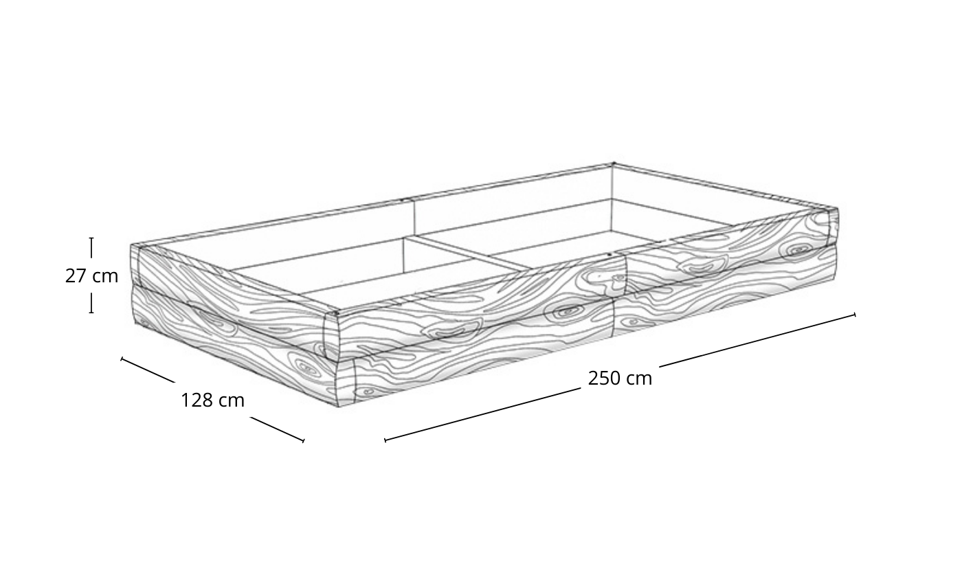 Aby stworzyć warzywnik o długości 372 cm, wysokości 27 cm i szerokości 128 cm, potrzebujesz łącznie 8 modułów po 128 cm (po trzy moduły na dłuższych bokach, po jednym module na krótszych). Na dłuższych bokach będą dwa łączenia, dlatego ostateczna długość wyniesie dokładnie 372 cm (128 + 128 + 128 – 2 x 6 cm).