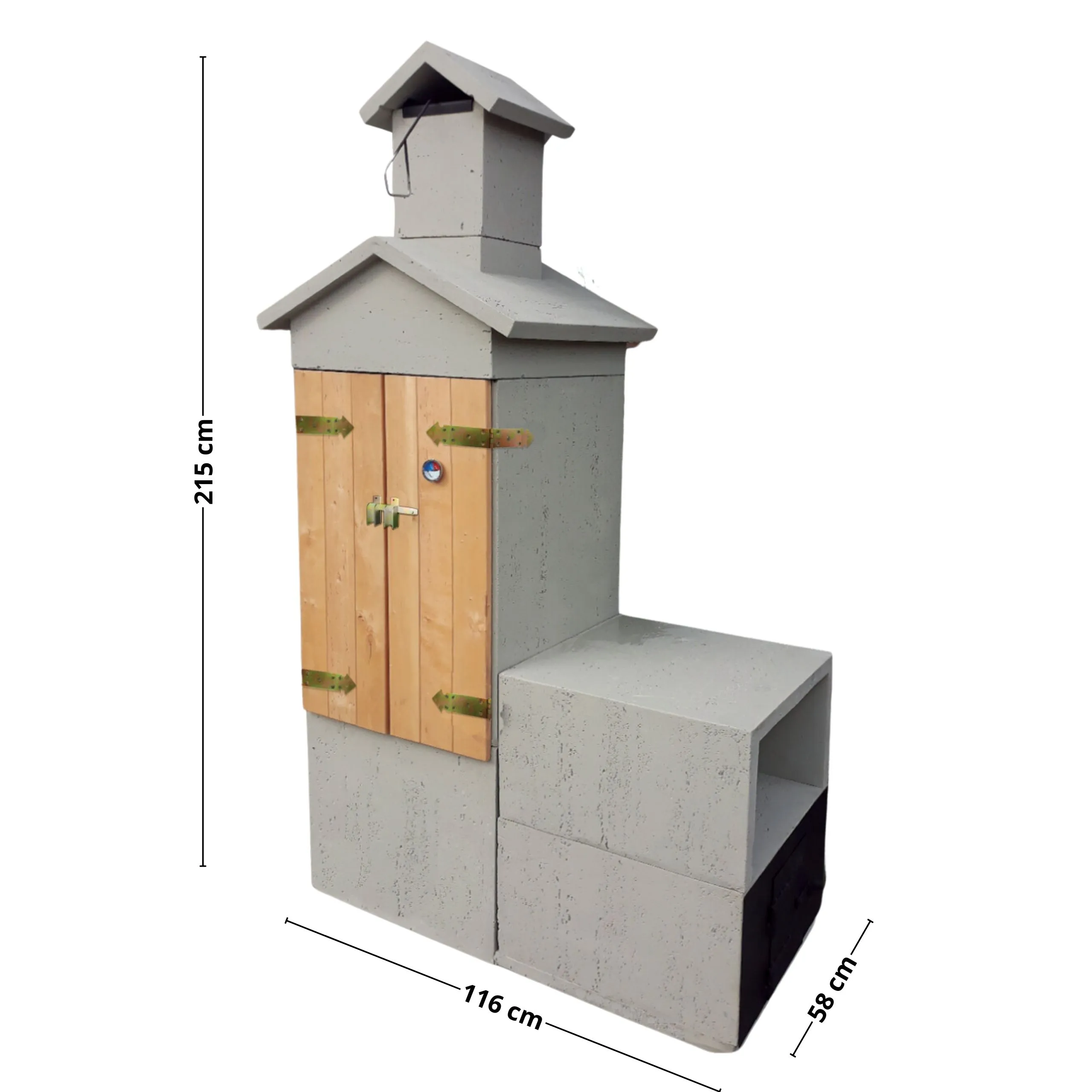 Helios to elegancka wędzarnia ogrodowa, stworzona z myślą o pasjonatach naturalnego wędzenia i nowoczesnych aranżacjach ogrodu. Wykonana z solidnego betonu imitującego beton architektoniczny, świetnie komponuje się zarówno w klasycznych, jak i nowoczesnych przestrzeniach. To nie tylko urządzenie do wędzenia, to dekoracyjny element, który podnosi prestiż całej strefy wypoczynkowej.